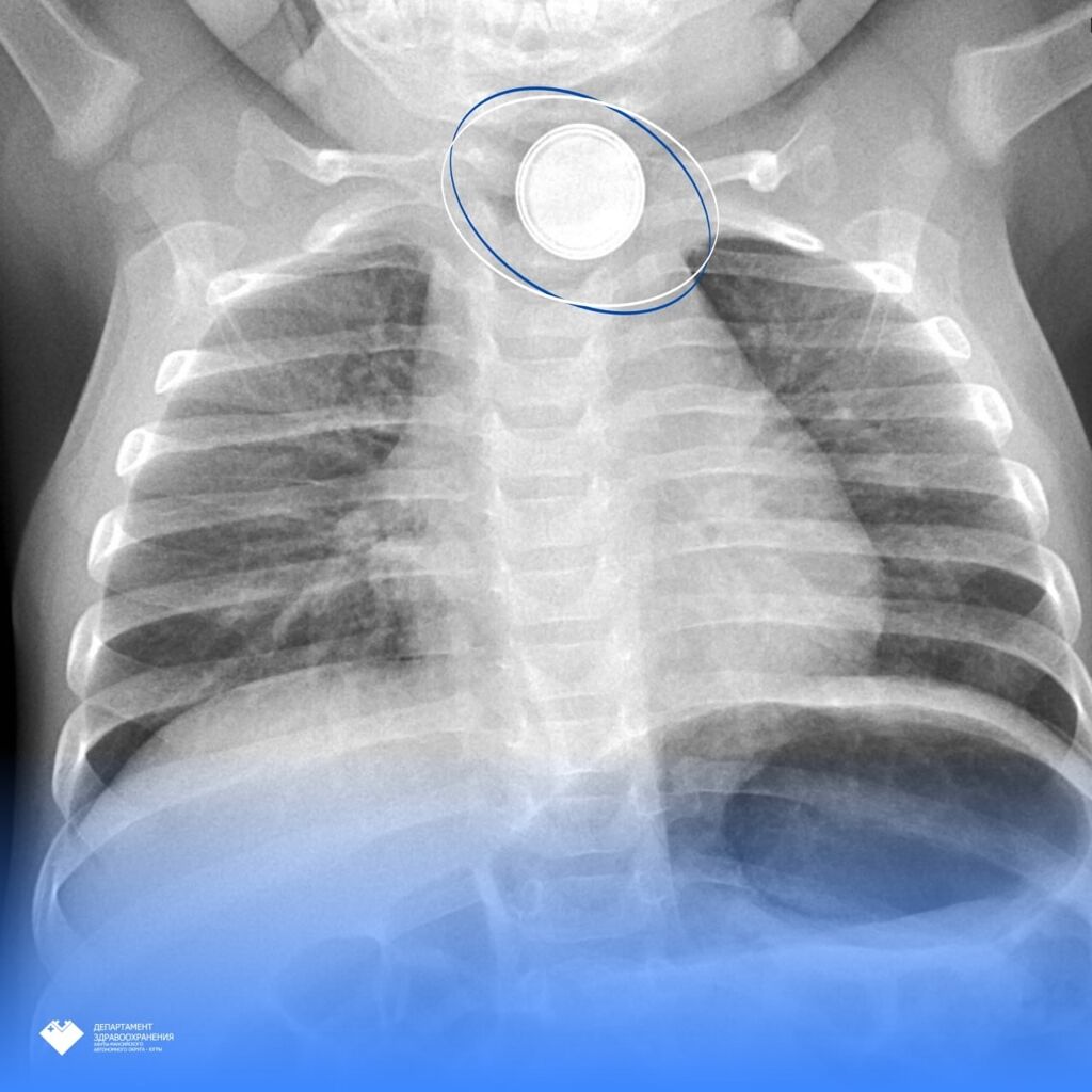 Как рассказали в пресс-службе Здравоохранения Югры, в Нефтеюганскую районную больницу на скорой привезли 11-месячного малыша. Родители заподозрили, что ребенок проглотил опасный предмет и решили вызвать врачей. Рентген подтвердил, что в теле младенца находился инородный предмет, который застрял в верхней части пищевода. Когда врачи об этом узнали, ребенка срочно эвакуировали в Сургут в Центр охраны материнства и детства.