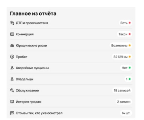 В отчетах Автотеки пользователи по-прежнему смогут узнать о количестве владельцев, истории обслуживания, пробеге, страховых выплатах, юридической чистоте и других важных фактах из истории автомобиля, информация о которых поступает более чем из 2000 источников, в том числе и закрытых.