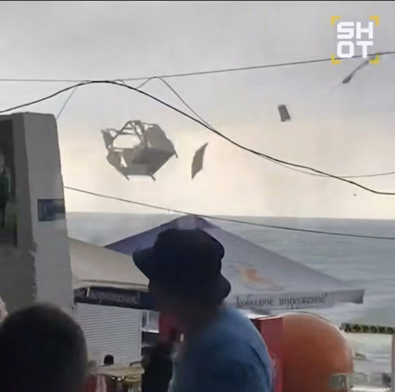 Утром в Краснодарском крае, в районе поселка Агой, был зафиксирован смерч, который нанес разрушительный ущерб пляжу с отдыхающими.