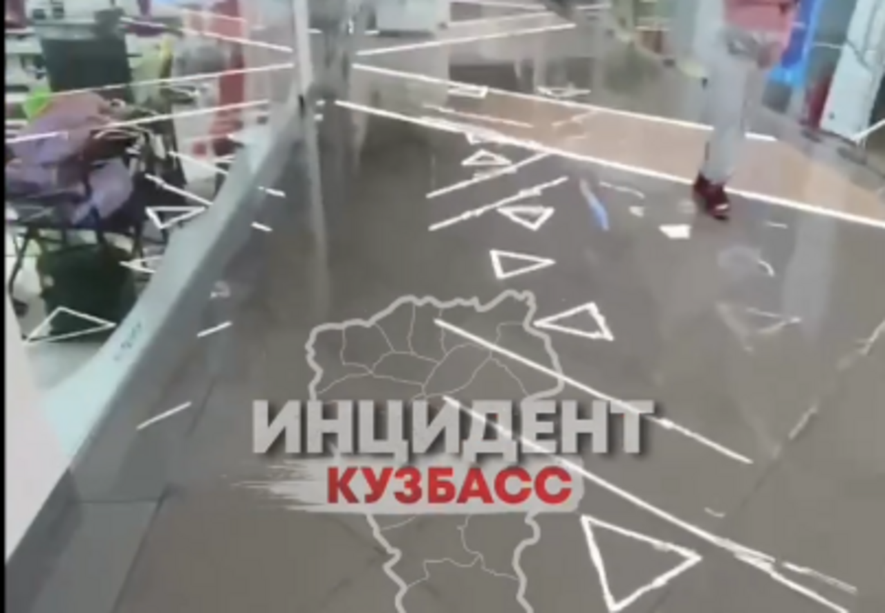 Один из торговых центров Кемерова затопило. Там вода стала вырываться из-под пола.