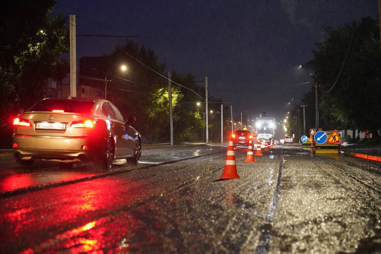 Ночью в Кемерове стартовал ремонт Кузнецкого проспекта. Подрядчики займутся реставрацией дорожного покрытия и переездов через трамвайные пути.