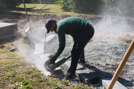 Сквер рядом с ДК Шахтеров в Рудничном районе Кемерова начали благоустраивать. Сейчас специалисты убирают старое изношенное покрытие, сообщает городская администрация.