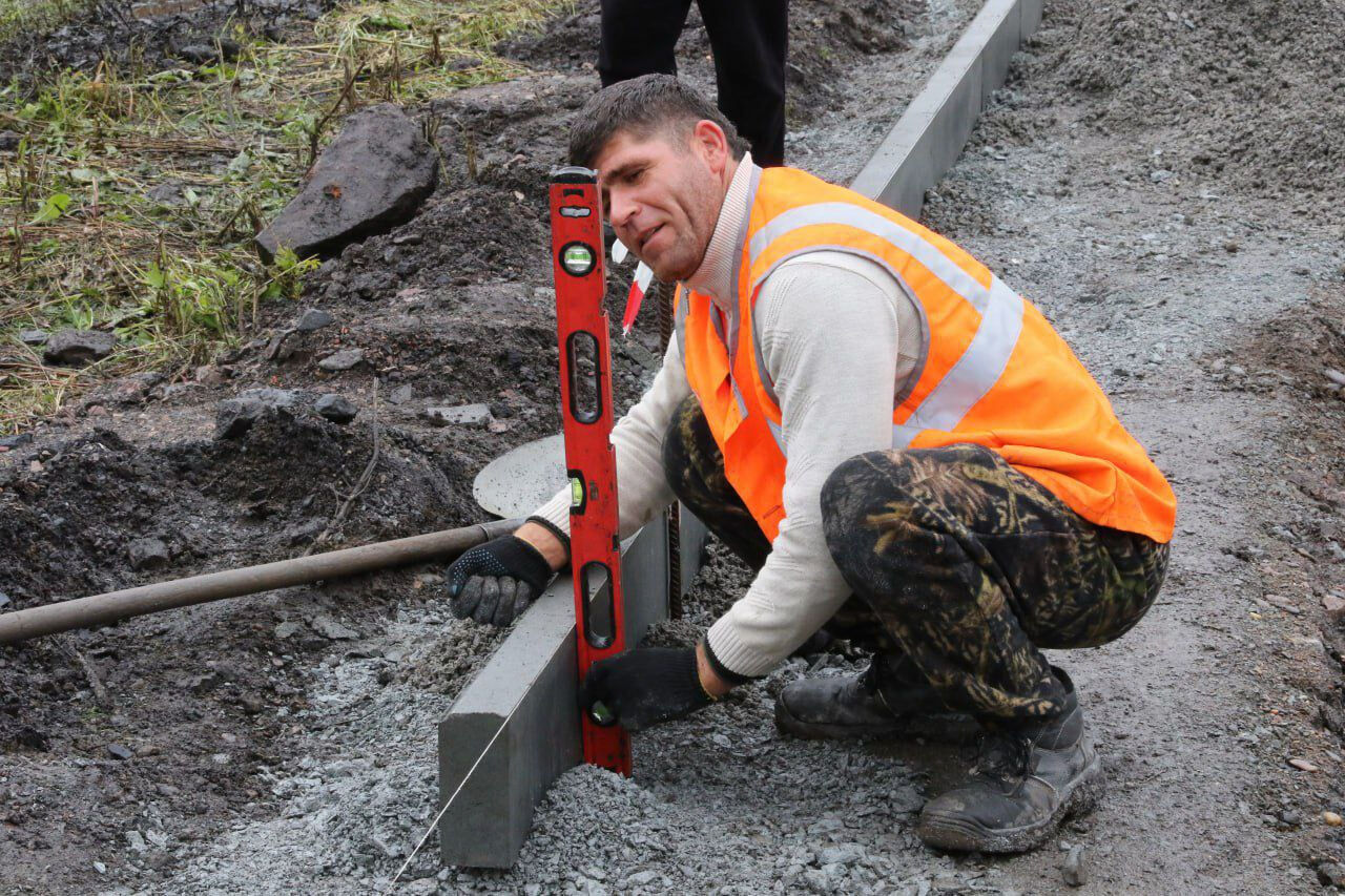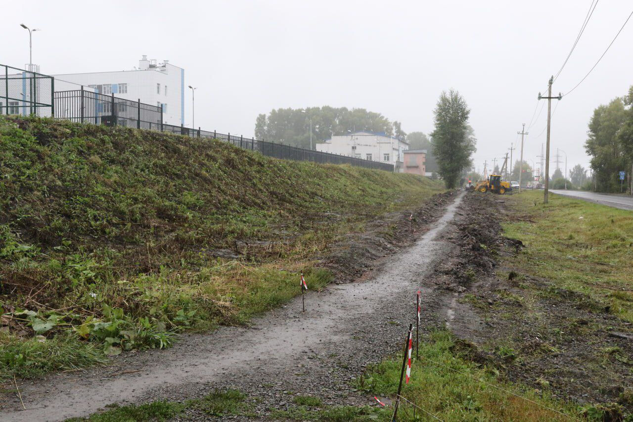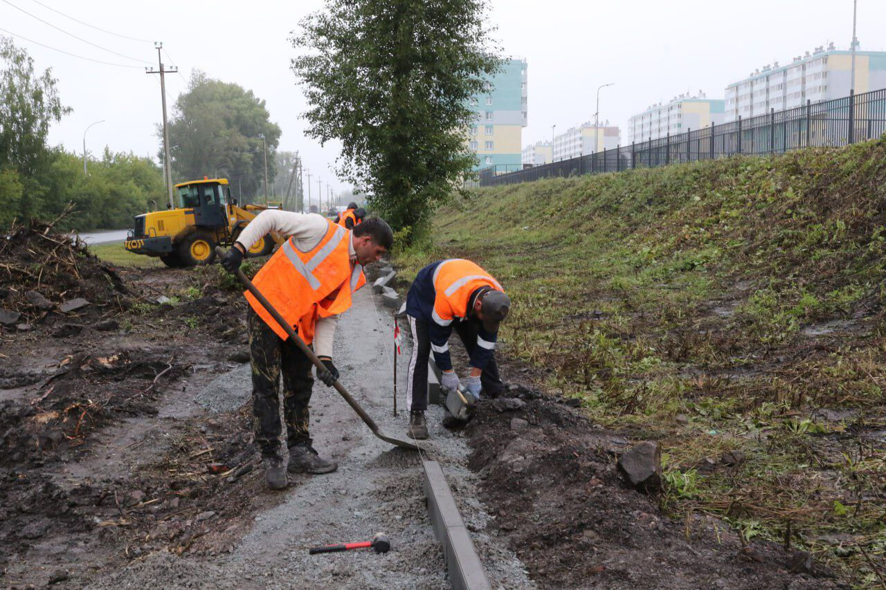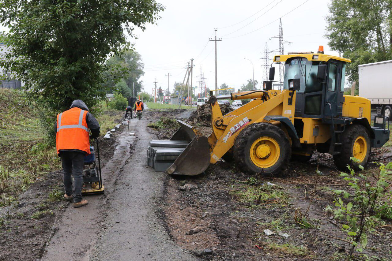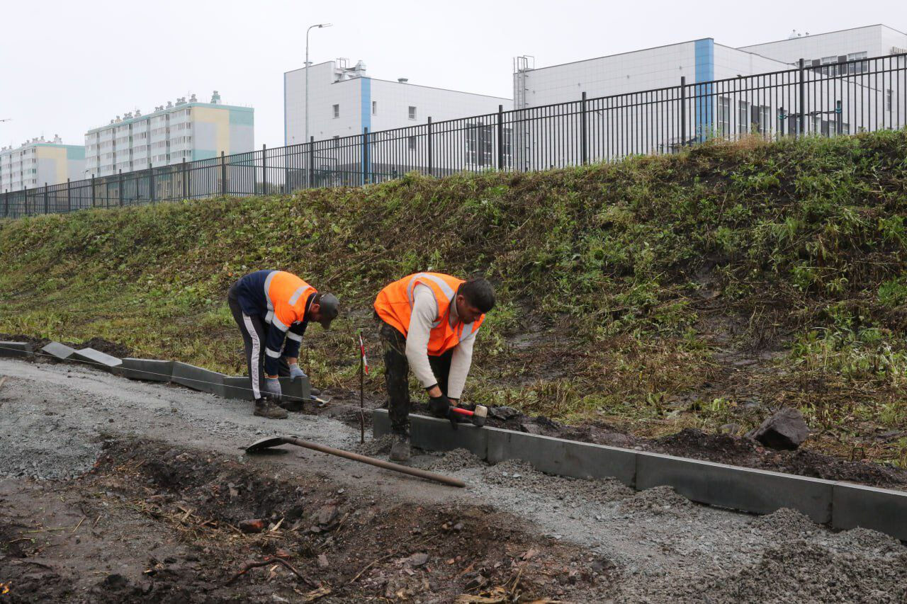 Около одной из школ Кемерова, которую еще строят, стартовали работы по благоустройству тротуаров.