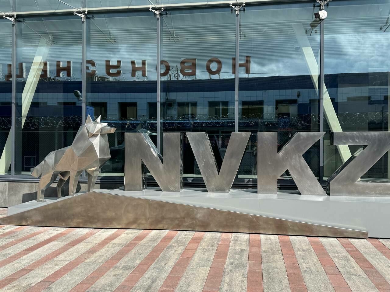 Летом прошлого года новокузнецкий аэропорт имени Волынова выбрал своего маскота: символом авиагавани стал металлический полигональный волк. Скульптура установлена у входа в новый терминал.