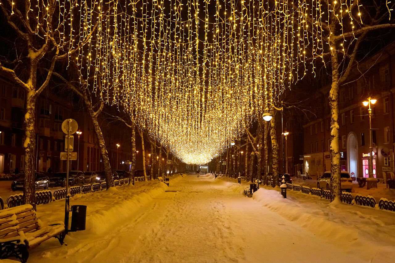 Речь идет об иллюминациях, расположенных на Красноармейском и Университетском мостах, в сквере Юности и на улице Кирова.