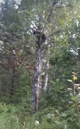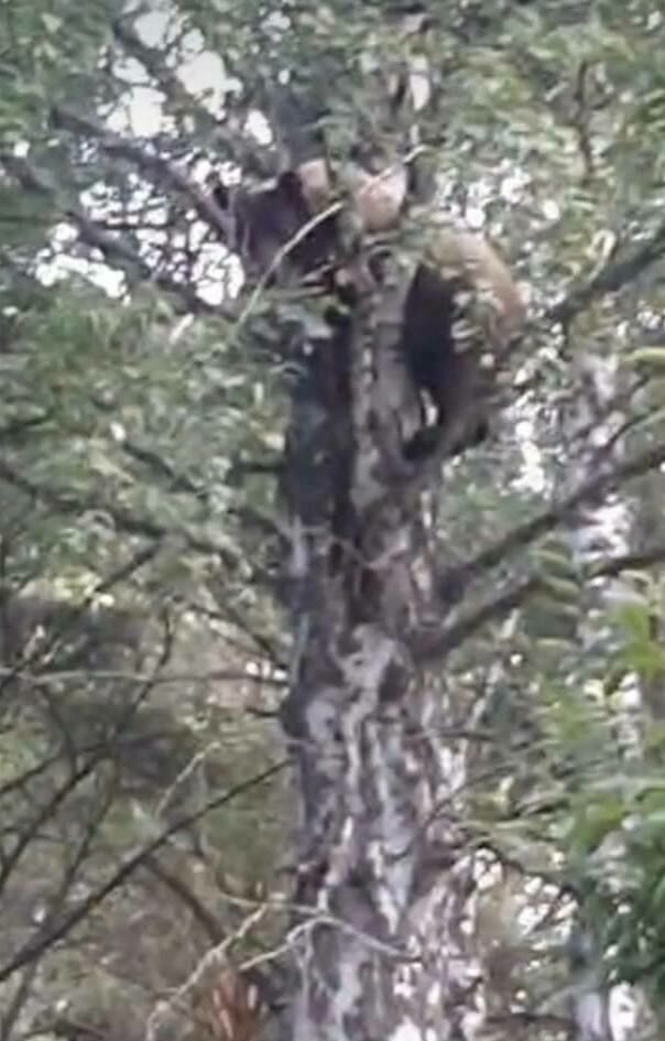 В районе одного из кузбасских поселков граждане заметили медведя, забравшегося на березу. Хищника удалось сфотографировать.