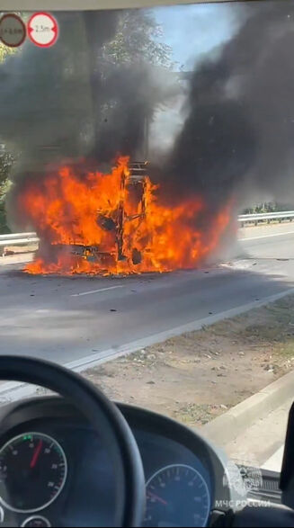 Рейсовый автобус загорелся во время движения по шоссе в Крыму