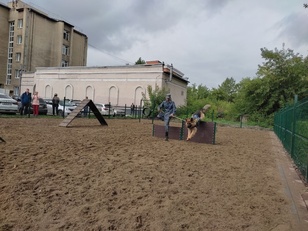 Так, площадка была оборудована лесенками, брёвнами, барьерами разной высоты и кольцом. Также там установили дог-бокс для уборки за питомцами. Для владельцев собак предусмотрена лавочка с навесом. Отмечается, что прогулочная зона защищена новым ограждением. Покрытие площадки выполнено из песка.