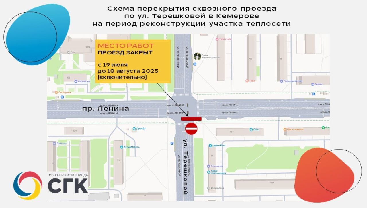 Энергетики сообщили, что ограничение движения на участке улицы Терешковой в Кемерове продлится до 18 августа.
