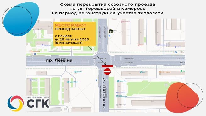 Так, в СГК сообщили, что ограничение движения по улице Терешковой в Кемерове продлено до 18 августа. Это связано с производством дополнительного объема работ, необходимость выполнения которых определилась после вскрытия перекрестка.