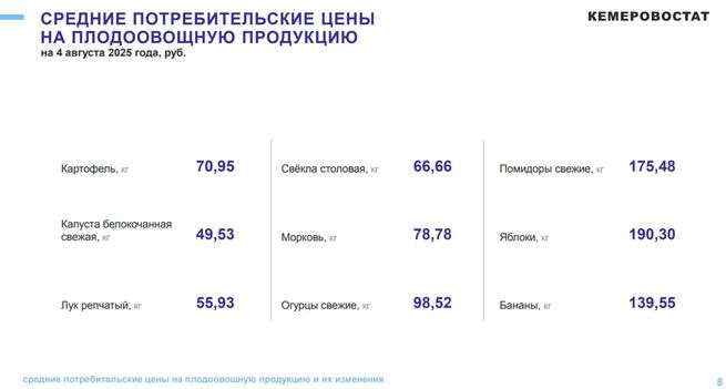 Что касается плодоовощной продукции, здесь за неделю выросли в цене огурцы свежие (+4,4%), а также бананы (+0,3%). А вот подешевели: свекла столовая – на 11,1%, картофель – на 9,4%, помидоры свежие – на 4,8% и некоторые другие продукты.