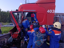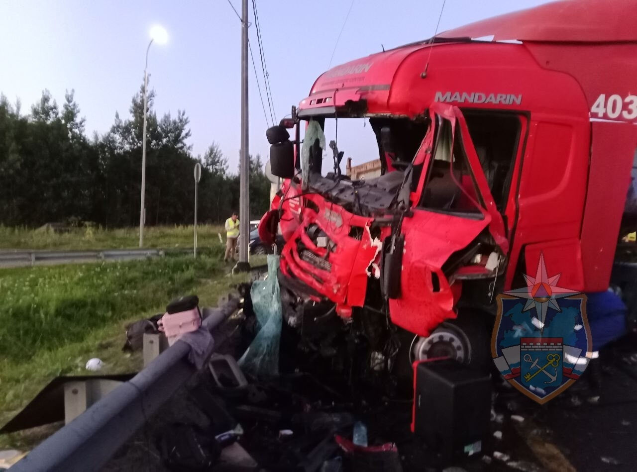 – ДТП произошло на Мурманском шоссе в районе поселка Разметелево. В результате аварии помощь спасателей потребовалась водителю и пассажиру грузового автомобиля, – сообщили в пресс-службе.