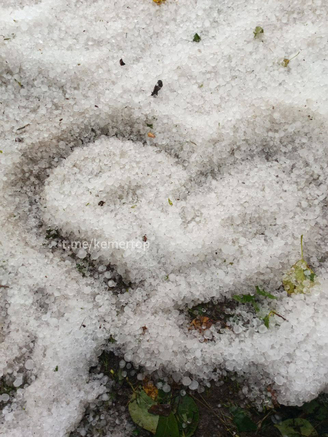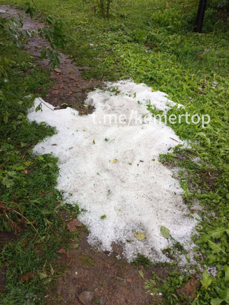 Жители поселка Ягуновского рассказали, что здесь начался град. Крупные льдинки падали с неба и долго не таяли на земле, превращаясь в настоящие сугробы. Граждане также отметили, что боялись, что град выбьет окна – настолько сильным он был.