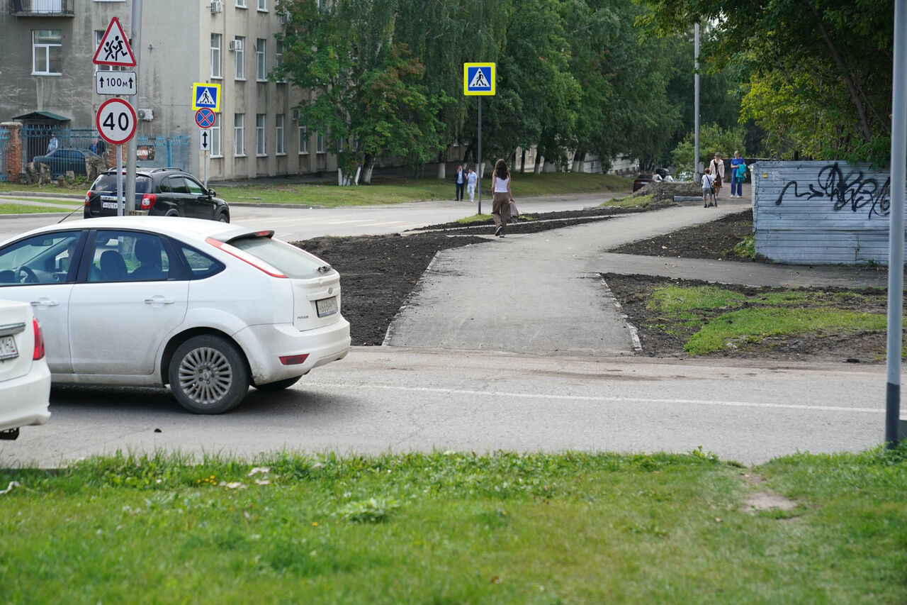 Отмечается, что в местах, где новый тротуар примыкает к Аллее трудовой славы шахтеров, пешеходный путь отсутствовал, из-за чего люди были вынуждены идти по газону или обходить этот участок.