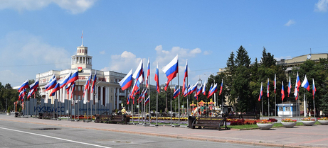 Кемерово украсили ко Дню шахтера. На площади Советов и улицах города установили 1 724 флага России, еще 120 тематических флажков прикрепили на опоры освещения.