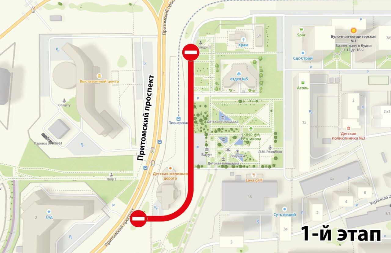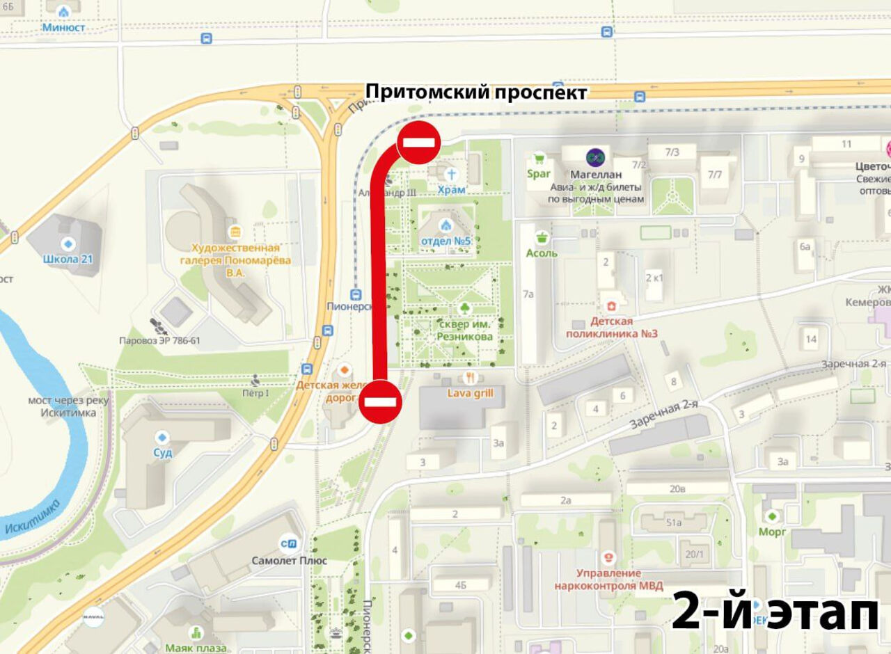 С полуночи понедельника, 25 августа, и до раннего утра субботы, 20 сентября, ремонтники перекроют в Кемерове поворот на Притомский проспект – от детской железной дороги до Храма прихода Воскресения Христова.