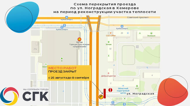 25 августа в 8:00 будет закрыт проезд по улице Ноградской на пересечении с проспектом Кузнецким. Как сообщает пресс-служба СГК, будут проводиться работы по замене плит перекрытия тепловой сети под проезжей частью.