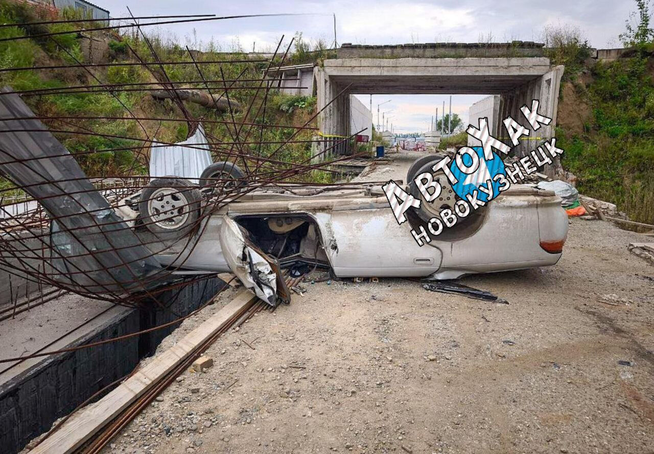 В Новокузнецке автомобиль запутался в металлических прутьях и перевернулся. В результате ДТП есть пострадавшие.