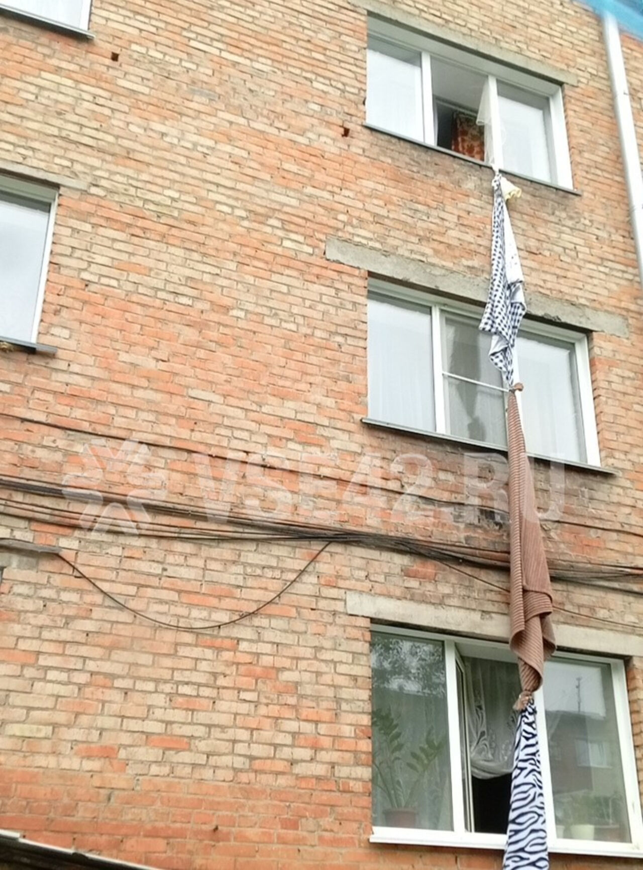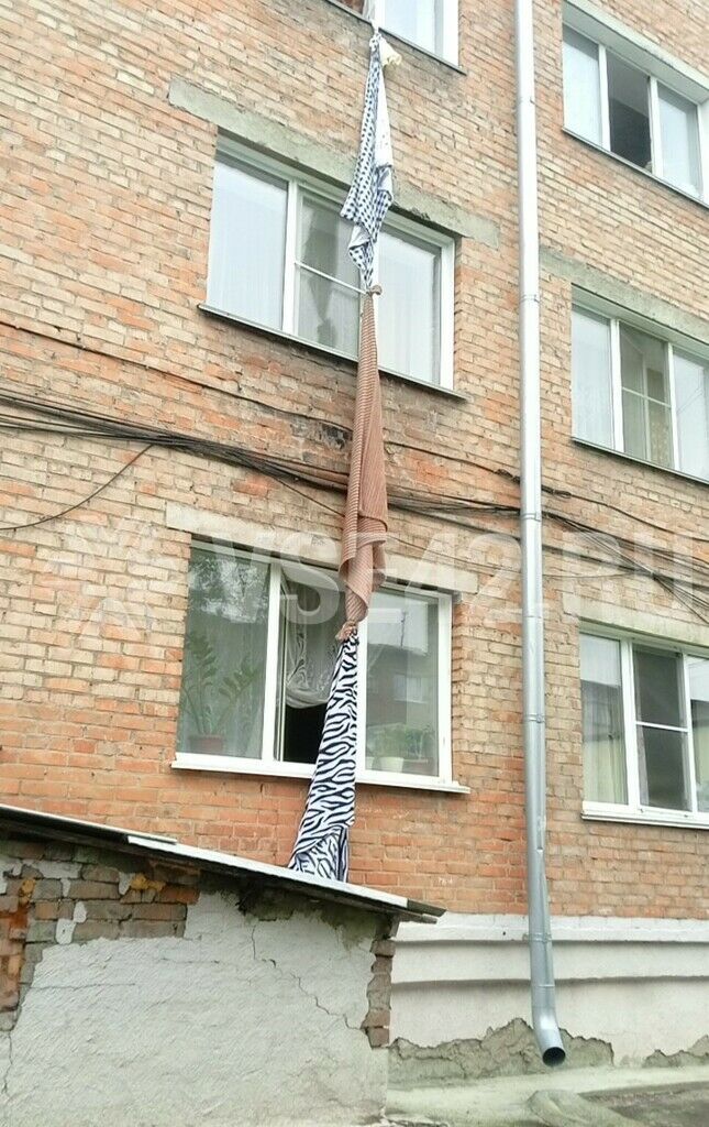 В кузбасском городе из окна третьего этажа одного из домов свисает самодельное приспособление для побега.