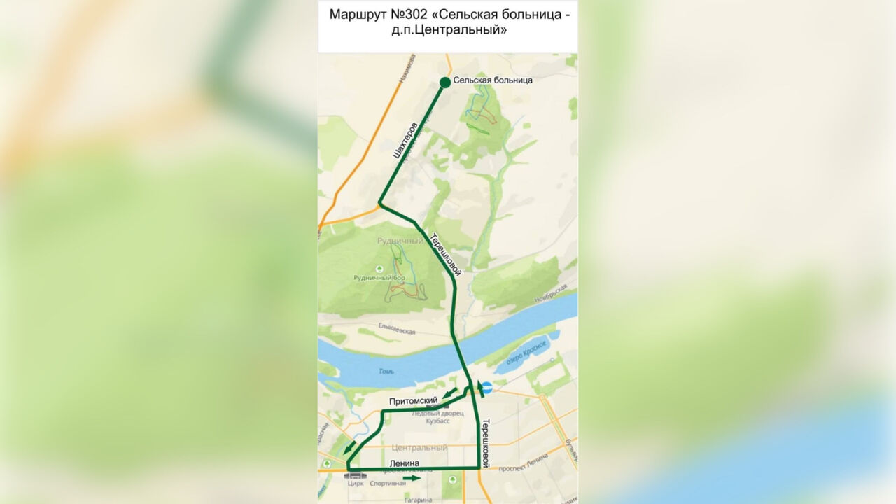 - Автобус №302 начнет свой маршрут от сельской больницы, пройдя по проспекту Шахтеров, улице Терешковой и Кузбасскому мосту, затем доберется до Московской площади, а потом продолжит путь по улице Соборной и проспекту Ленина до д/п "Центральный".