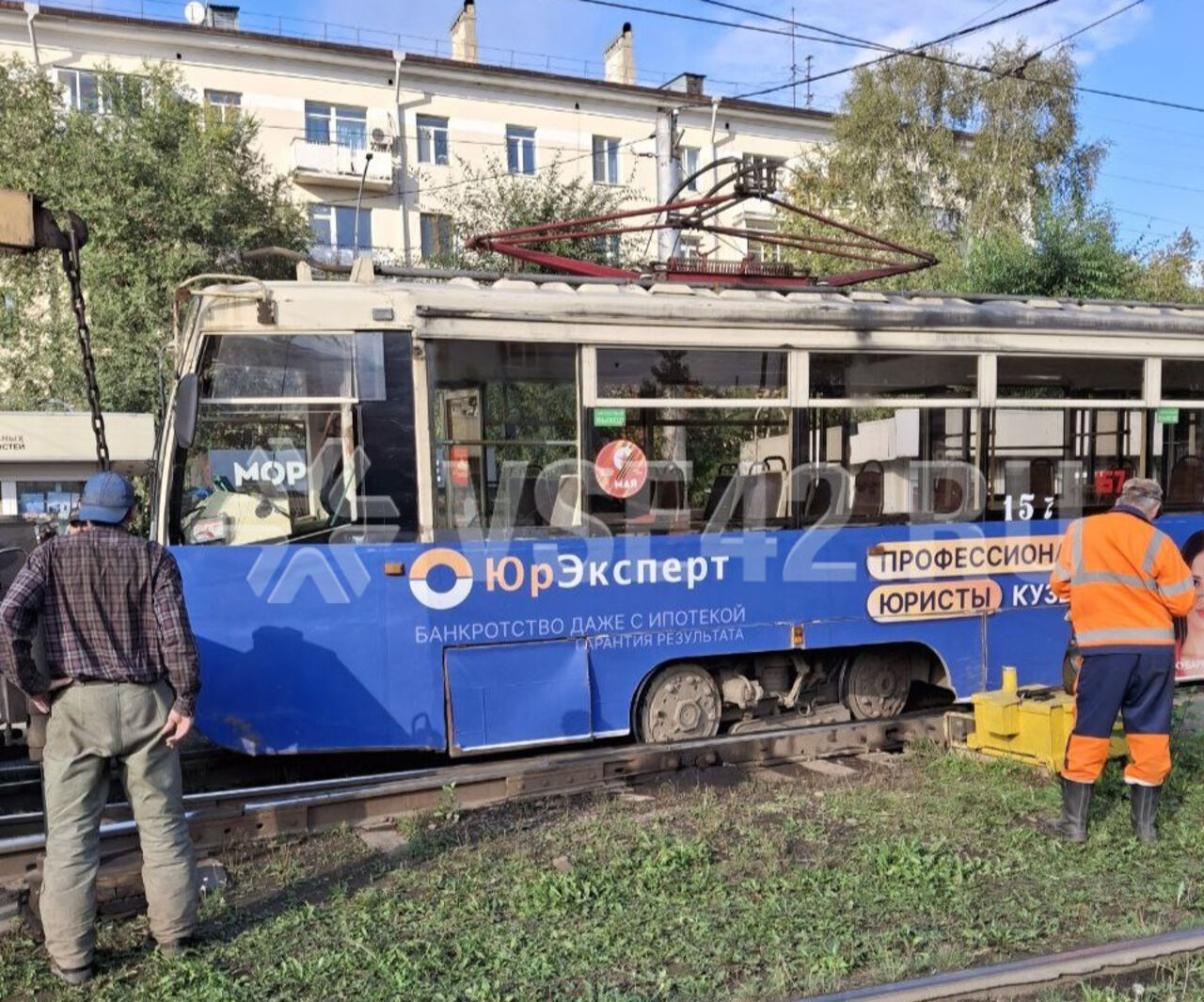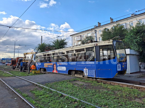 Сошедший с рельсов трамвай парализовал движение на правый берег в Кемерове