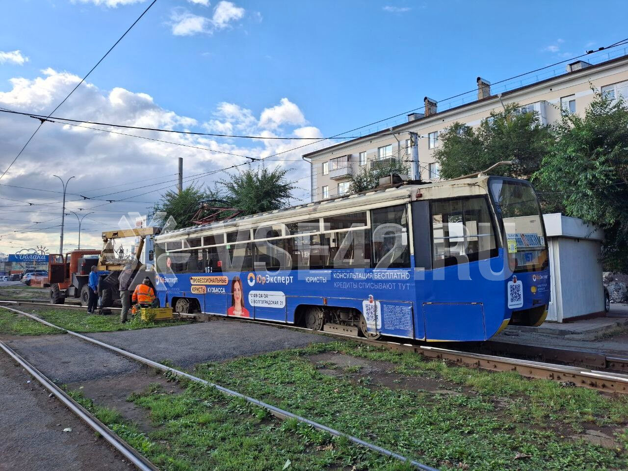 В Кемерове трамвай сошел с рельсов, в связи с чем трамваи на правый берег временно не ходят.