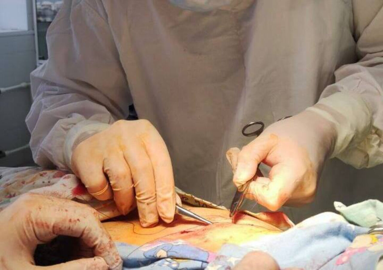 В Крапивинской районной больнице пациентке сделали операцию, она длилась более четырех часов. Врачи установили ей сетчатый имплантат размером 38 на 30 сантиметров.
