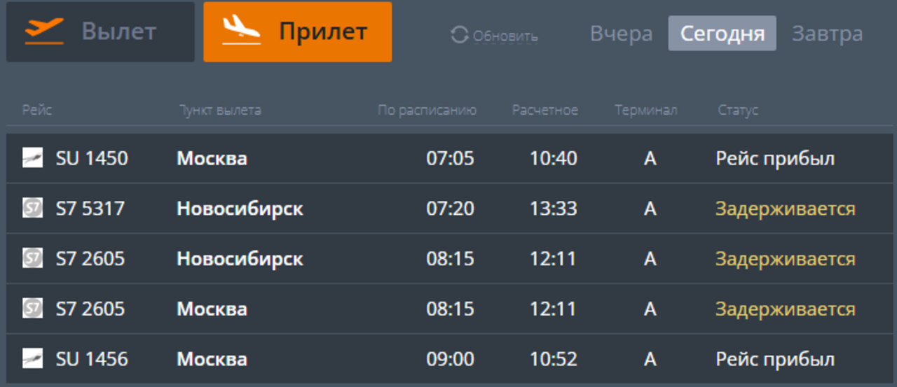 По данным онлайн-табло кемеровской воздушной гавани, сильно задерживается прилет судов из Москвы и Новосибирска и вылет туда же.