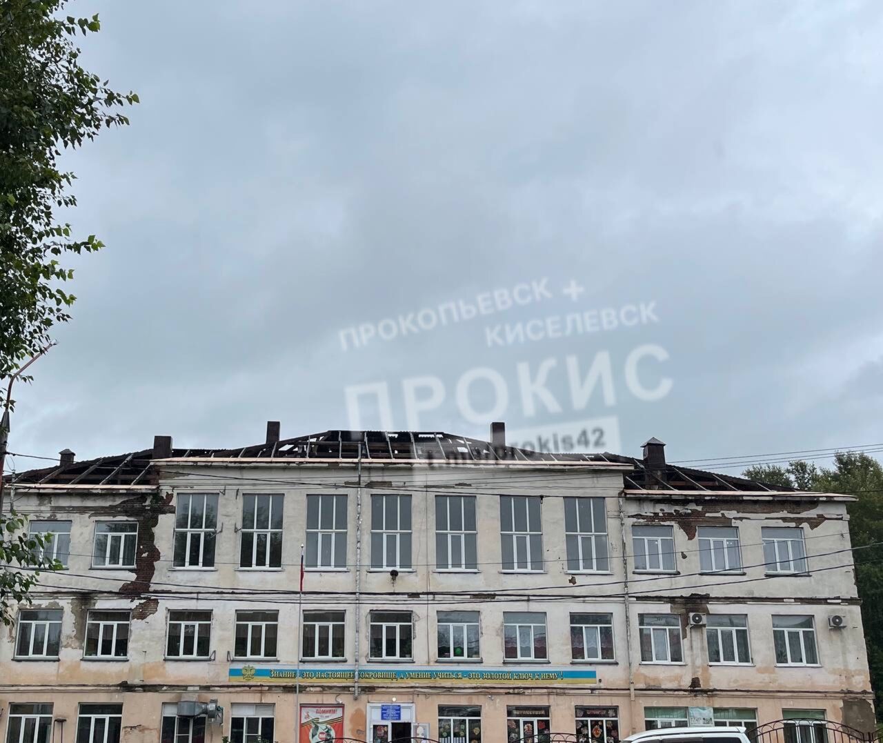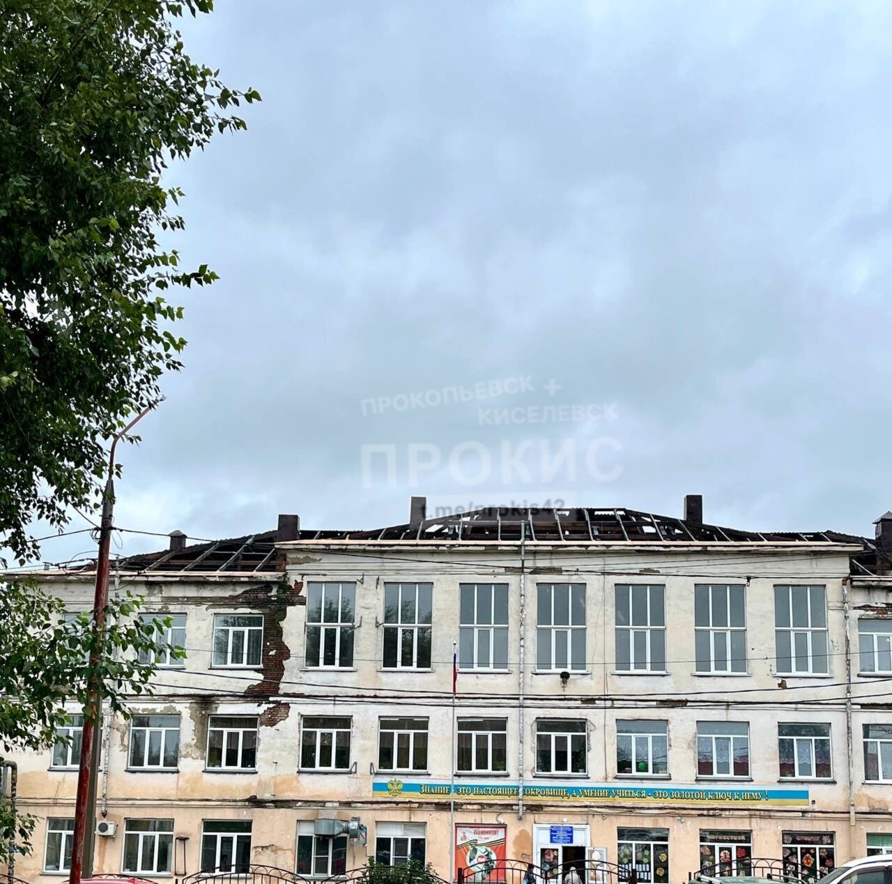 Судя по опубликованным кадрам, крыша здания находится в удручающем состоянии, а рядом со школой навалены доски и прочий строительный мусор.