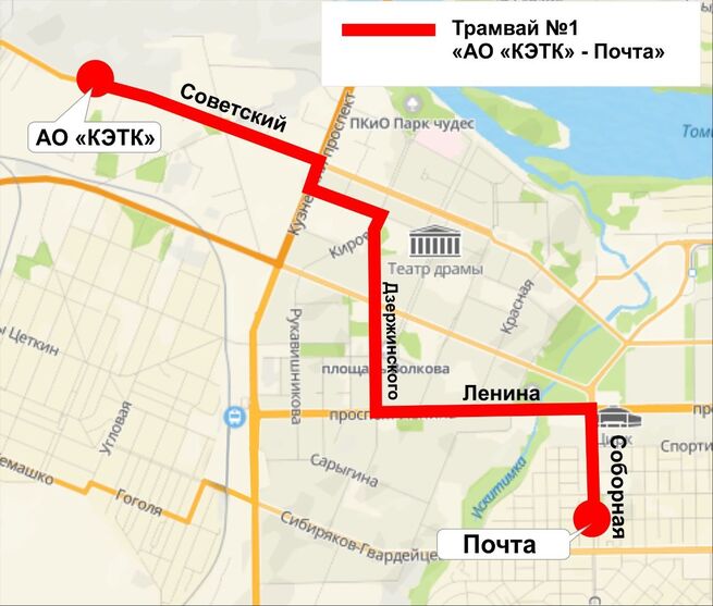 В этот период он будет курсировать по сокращенной схеме – от остановки "КЭТК" до остановки "Почта".