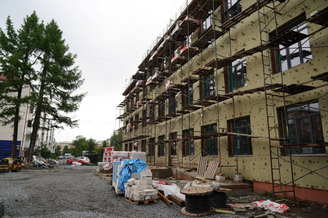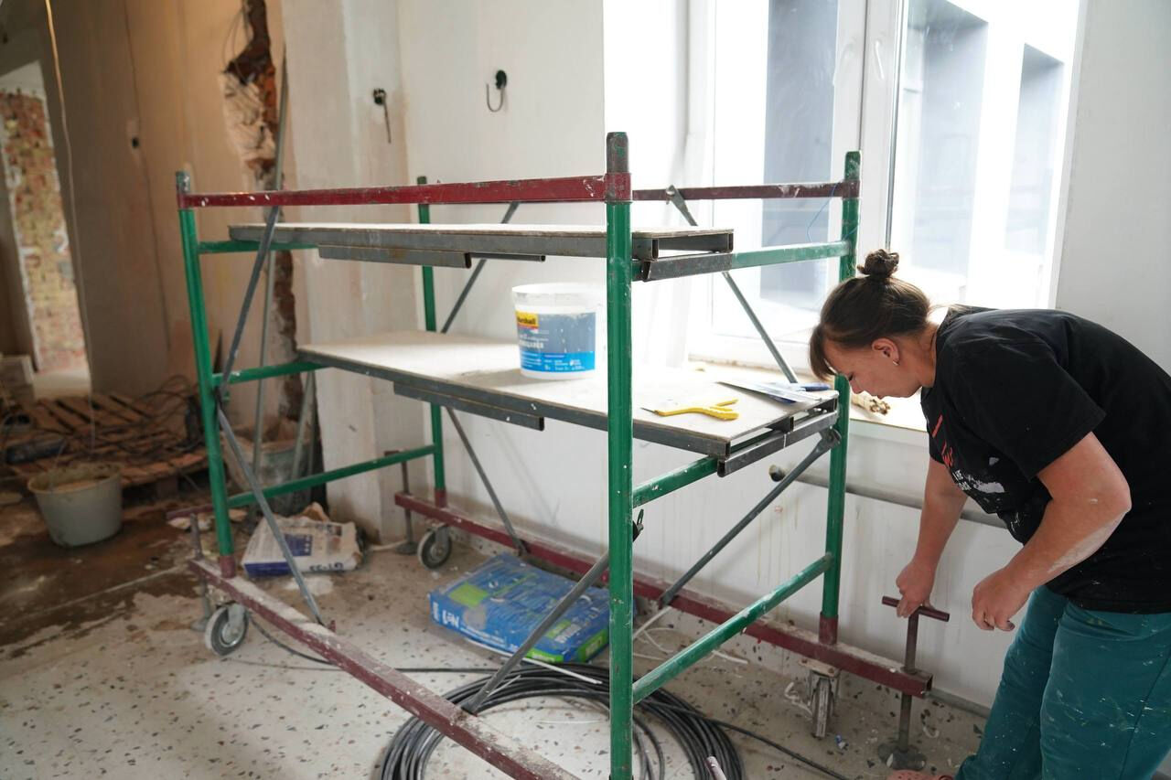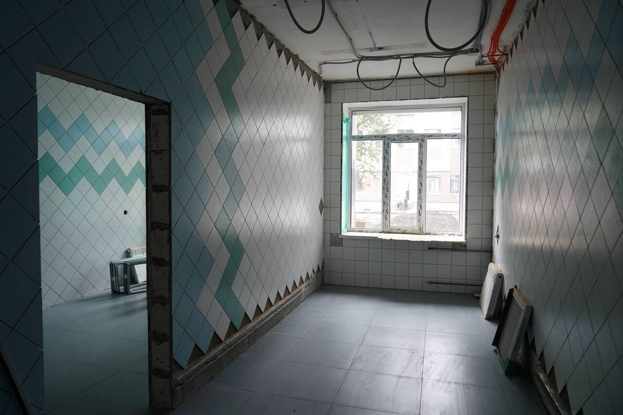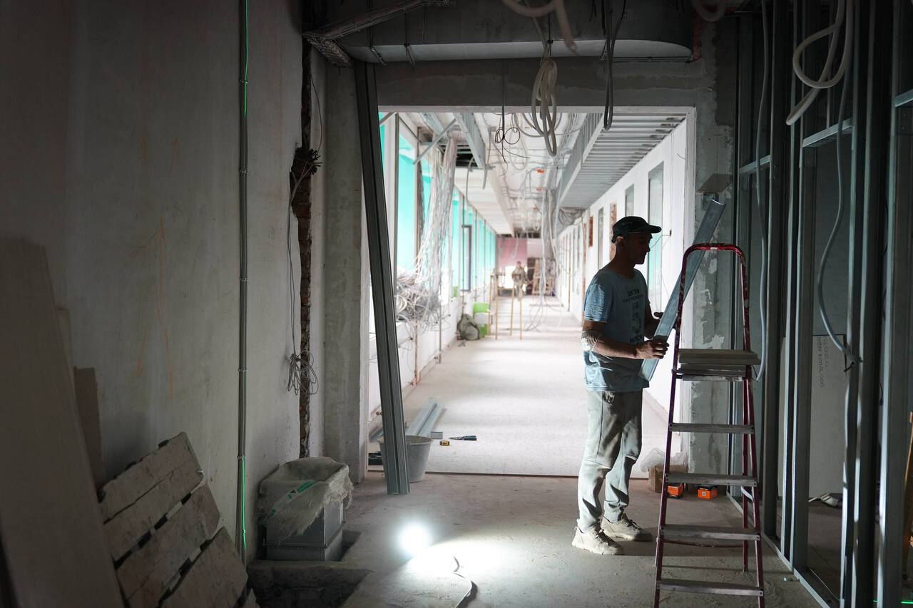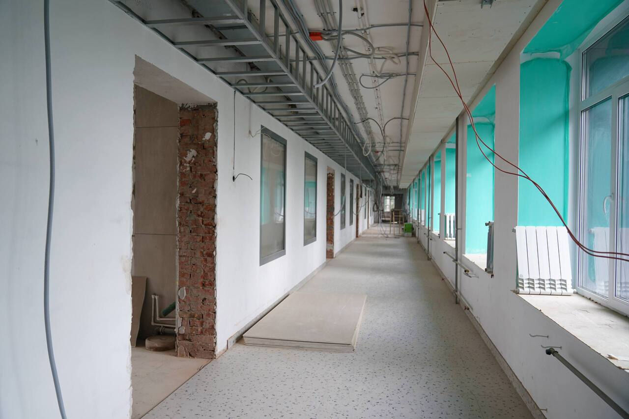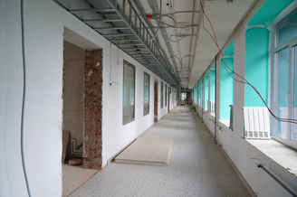 На данный момент в здании завершены демонтаж, установлены перегородки, укреплены стены, смонтирована кровля, сделана черновая отделка стен. Ведутся чистовая отделка, укладка плитки, прокладывают провода и вентиляцию.
