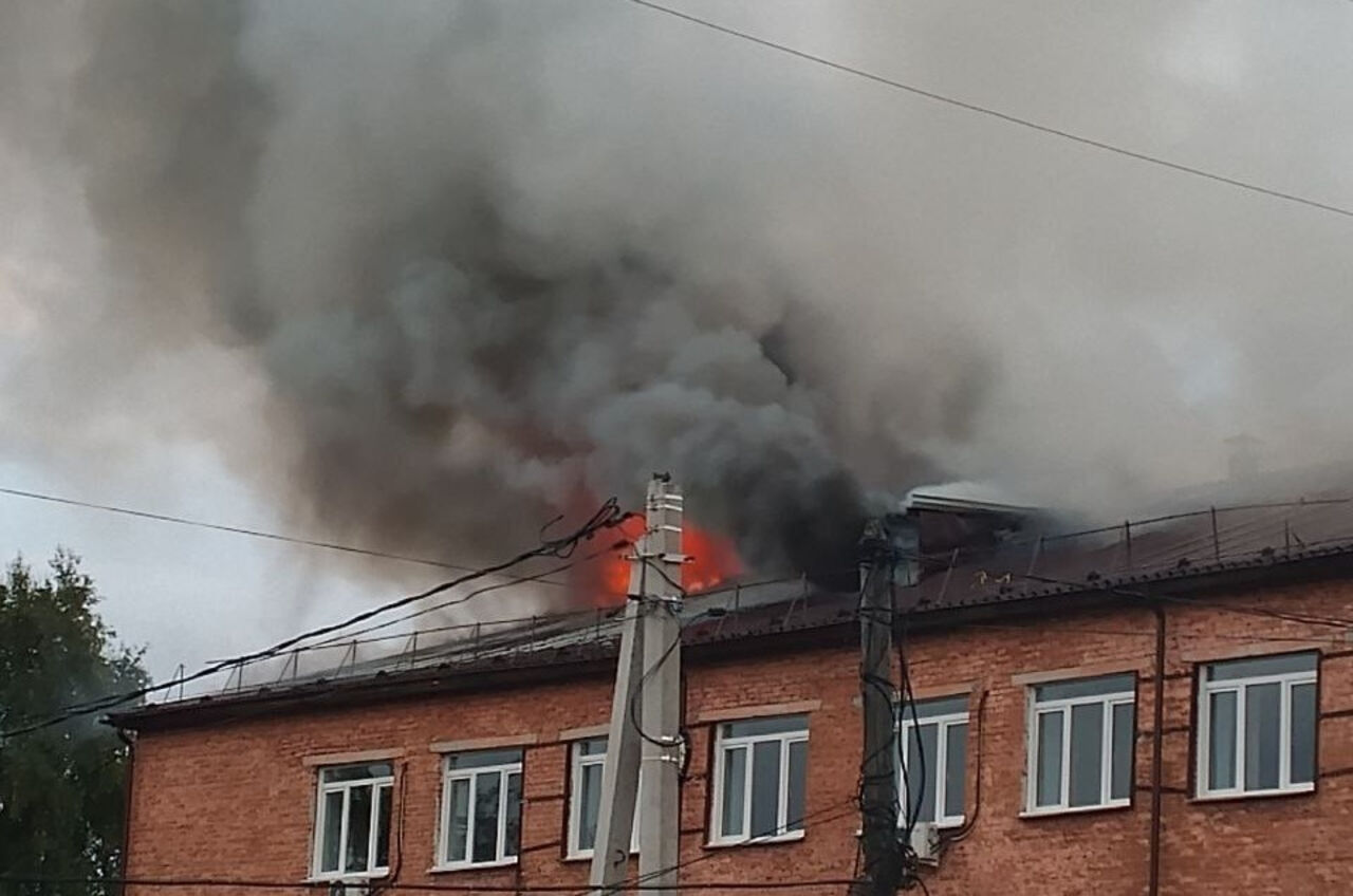 Очевидцы происшествия разместили фотографии с места события в социальных сетях. На представленных изображениях можно заметить мощный столб дыма, который окутал крышу учебного заведения.