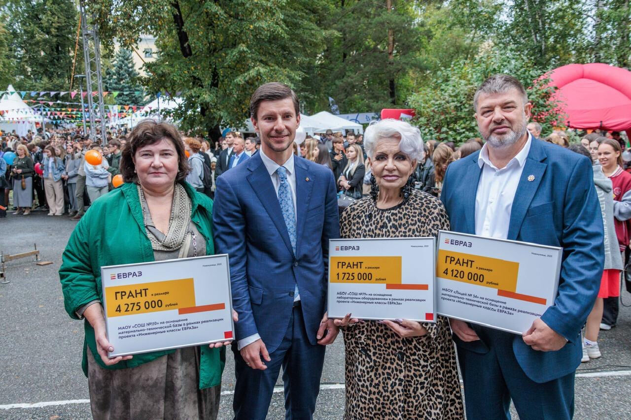 ЕВРАЗ ЗСМК вручил гранты на оснащение материально-технической базы трем средним образовательным учреждениям Новокузнецка: лицею №34, школам №110 и №79 на общую сумму свыше 10 млн рублей.