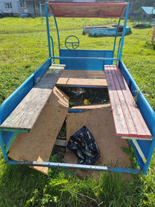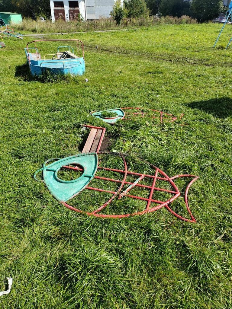 Они также опубликовали фотографии, на которых запечатлены разрушения. Судя по кадрам, в частности сломаны качели в виде рыбы и оторваны ступени с горки