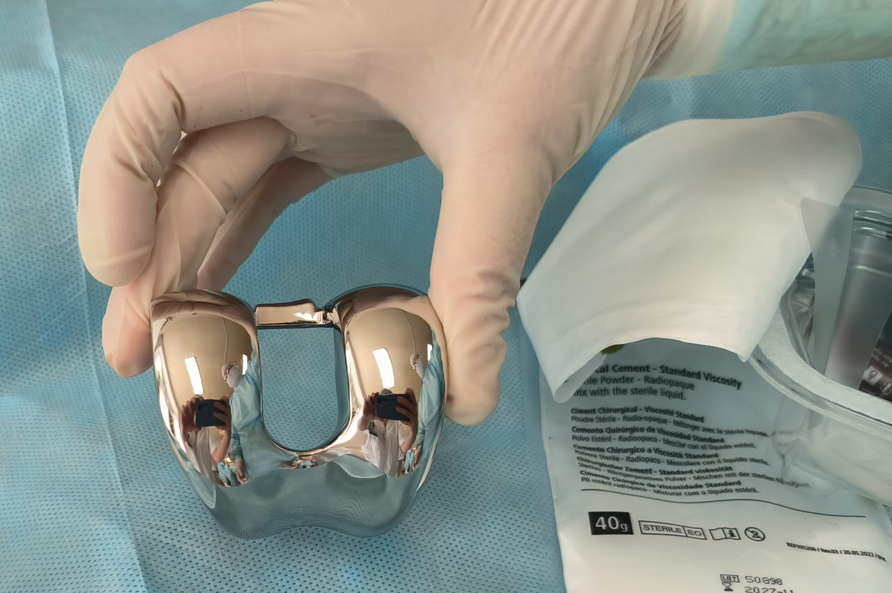 При таком вмешательстве проводится замена поврежденных участков бедренной и большеберцовой костей на искусственные импланты. Протезы хорошо совмещаются с человеческими тканями и не сильно нагружают организм.