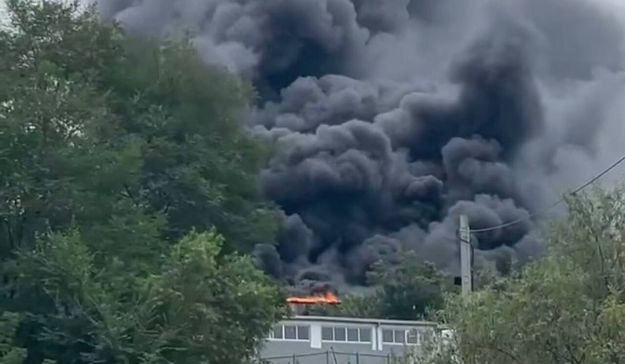 Согласно имеющимся данным, огонь охватил около 1 000 квадратных метров помещения. Уточняется, что из-за пожара частично обвалилась кровля здания.