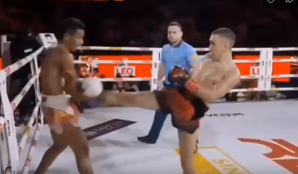 Уже в третьем раунде кузбассовец мощным лоу-киком уложил противника на пол, а затем добил точным тае-тронгом – прямым ударом ногой в туловище.