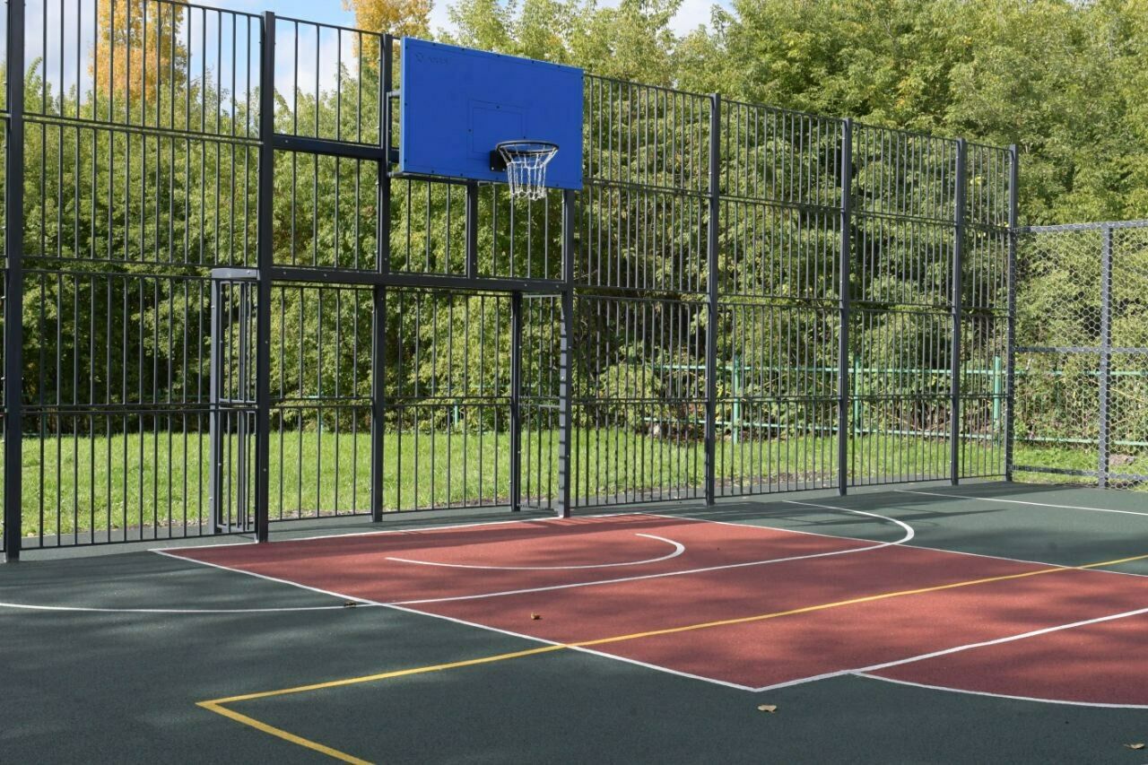 На площадке есть покрытие из высококачественной амортизирующей резины, оно обеспечивает безопасность при занятиях спортом. Ученики и жители микрорайона уже оценили игровые зоны для футбола, баскетбола и волейбола.