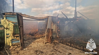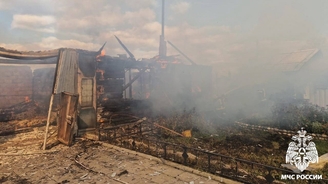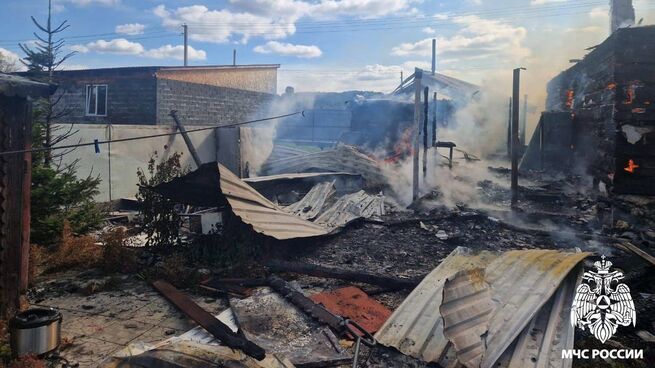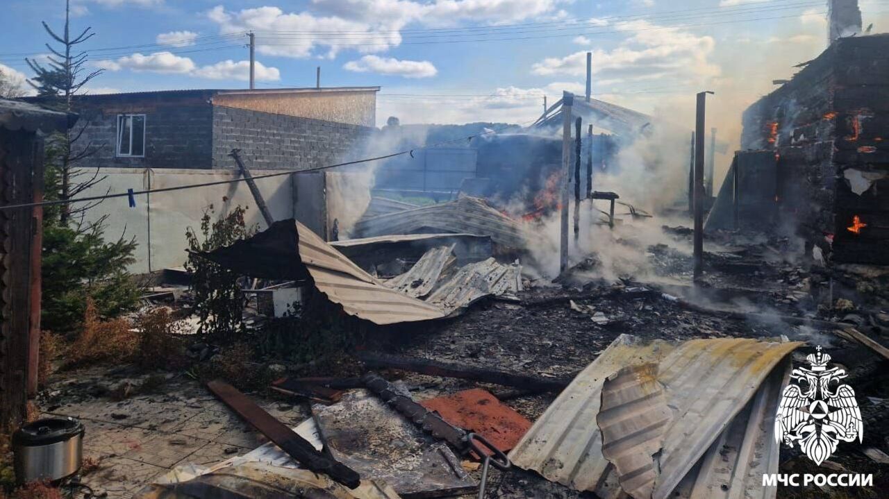 – На момент прибытия первого подразделения дом и надворные постройки горели открытым пламенем, произошло обрушение конструкций, – сообщили в ведомстве.