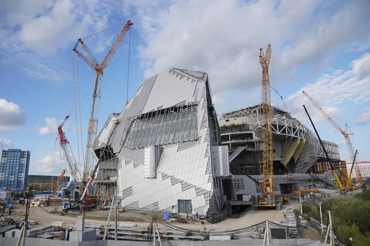 Сейчас идет сложный этап стройки – монтаж фасада. Как отметил глава области, "закрыть" такой огромный объект будет непросто. Чтобы выполнить эту задачу, подрядчики увеличивают количество рабочих.