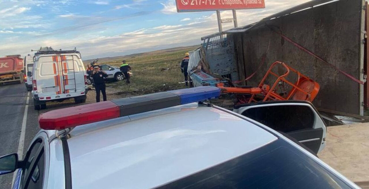В результате случившегося 39-летняя жительница Ставрополя, ехавшая в иномарке, скончалась на месте автокатастрофы еще до приезда медиков. На опубликованных кадрах видно, что после столкновения машина превратилась в груду металла.