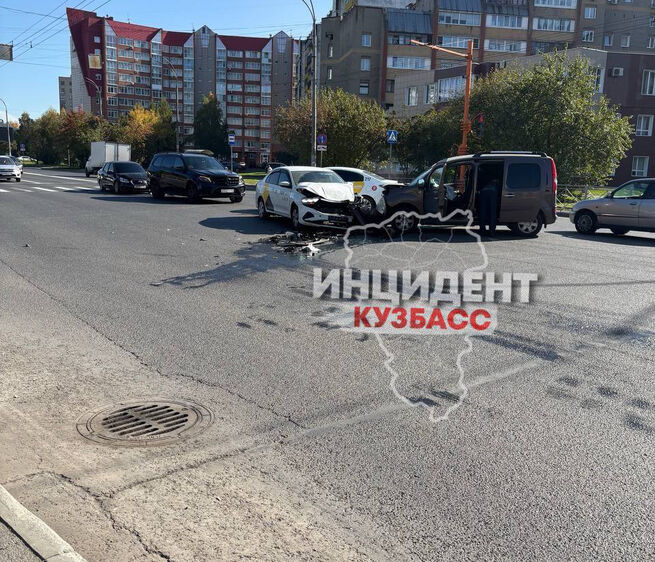 В пятницу, 19 сентября, около 12:00 в Кемерове на проспекте Молодежном недалеко от "Гринвича" столкнулись лоб в лоб две легковушки.