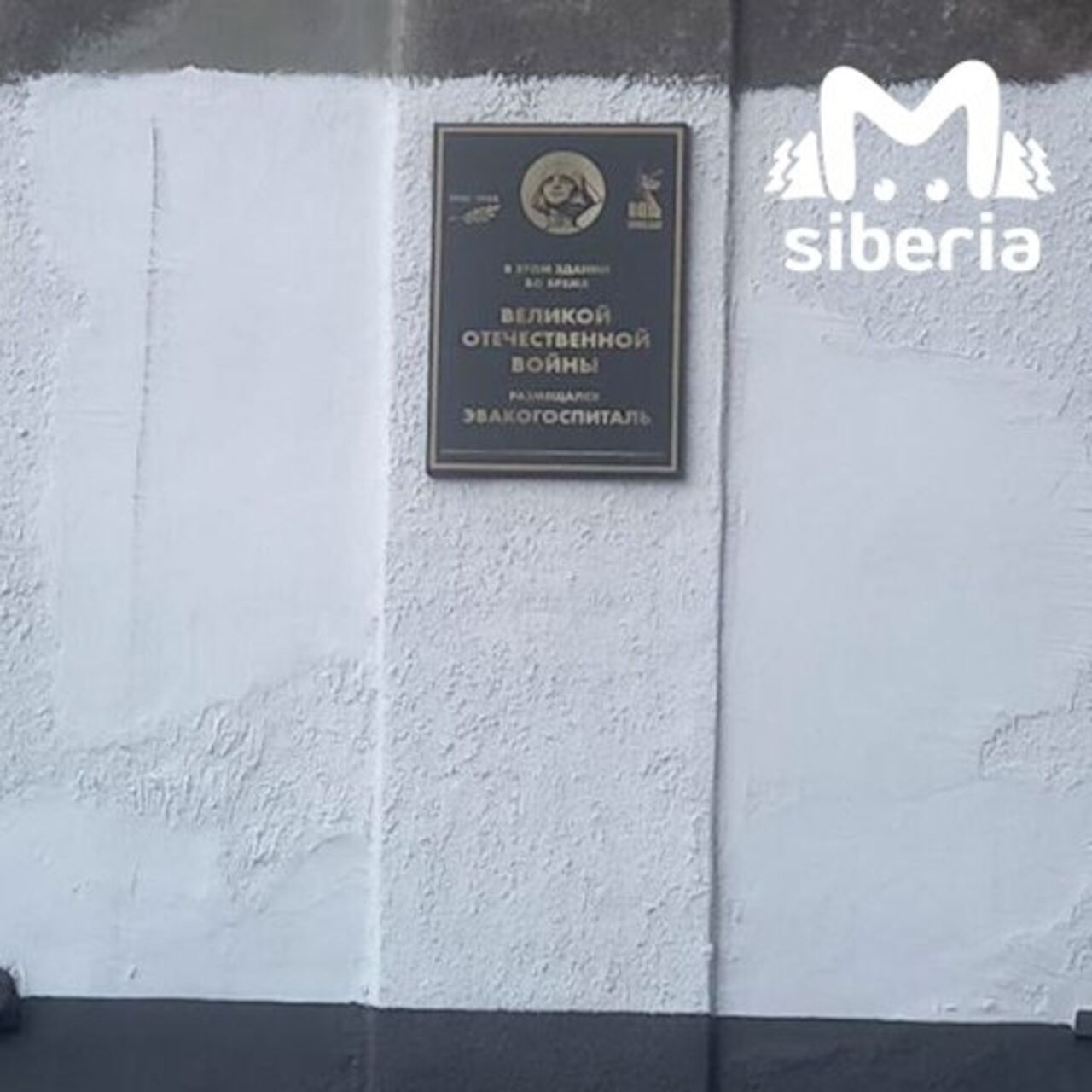 На одном из домов в Новокузнецке установили мемориальную табличку. Однако покрашенной для этого оказалась лишь небольшая часть стены.