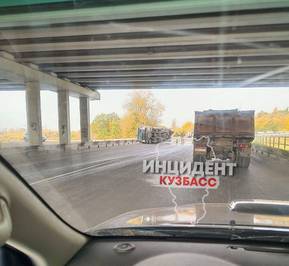 Во вторник, 23 сентября, около 9:40 на улице Правая гавань вблизи строения 1А в Кемерове перевернулся самосвал.