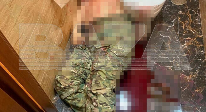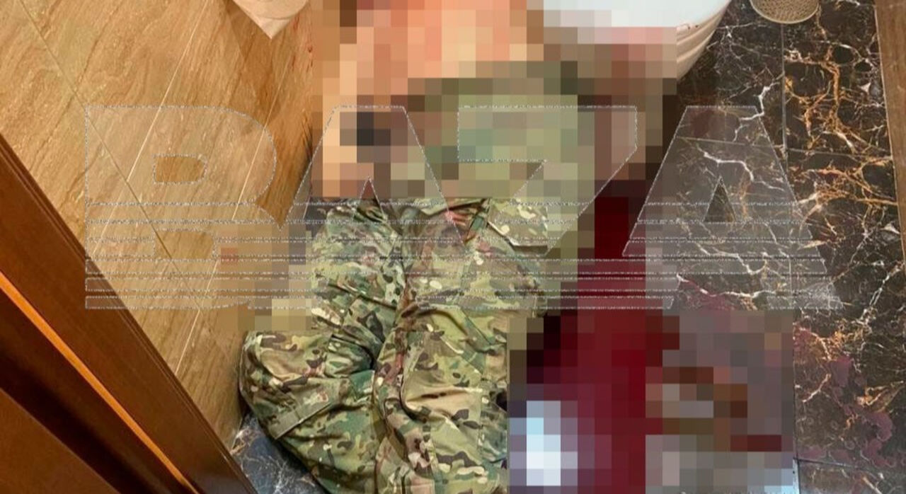 На опубликованном Telegram-каналом Baza снимке видно, что тело экс-чиновника в луже крови находилось на полу в кабинке туалета.