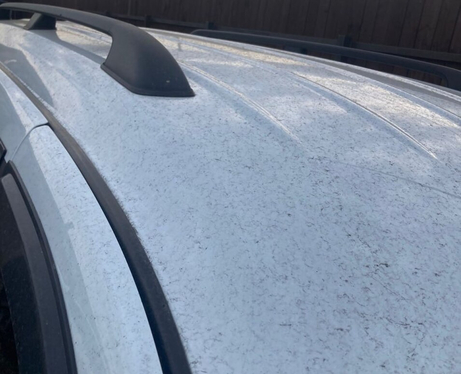 На фотографиях видно, что пыль осела на воде. Также грязь отчетливо видна на белом автомобиле.