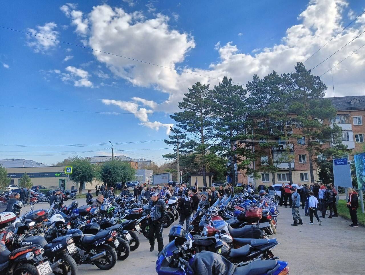 Так, мотоциклисты устроили пробег по улицам поселка, почтив память погибших, а также возложили цветы.