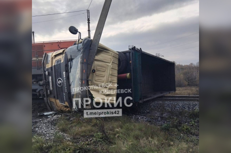 В кузбасском селе столкнулись грузовая машина и поезд. Об аварии рассказали очевидцы в социальных сетях.