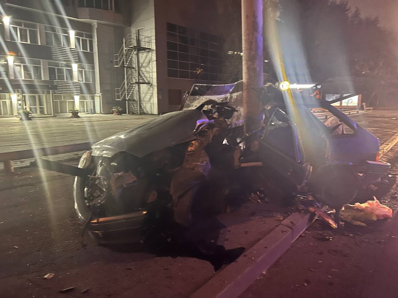 Двое 19-летних студентов лишились жизней в автокатастрофе на тюменской улице. Машина, в которой они находились, на скорости влетела в опору освещения.