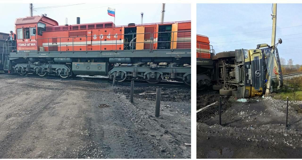 Накануне на железнодорожном переезде в Кузбассе произошло ЧП: поезд протаранил грузовик и впечатал его в столб.